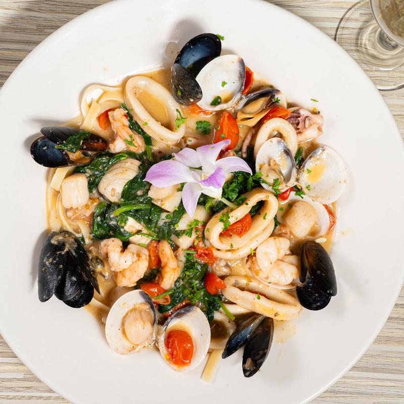 Half $120.00 | Full $220.00 • Mussels, grilled calamari, and shrimp sautéed with your choice of pesto sauce, marinara sauce, or butter lemon sauce over pasta