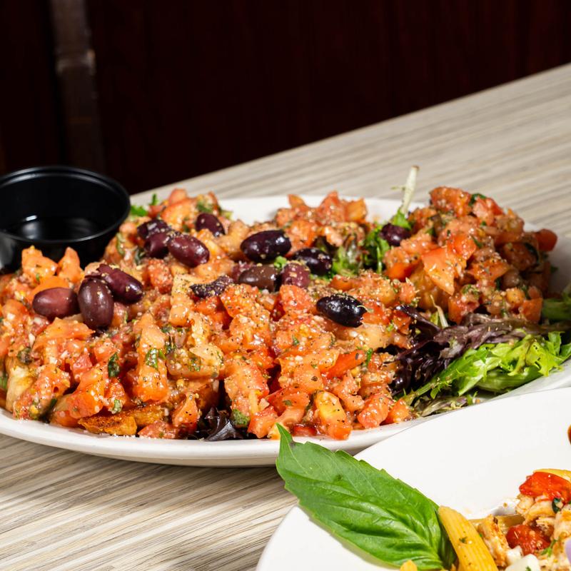 Half $30.00 | Full $50.00 • Grilled homemade bread with tomatoes, Kalamata olives, fresh basil and extra virgin olive oil