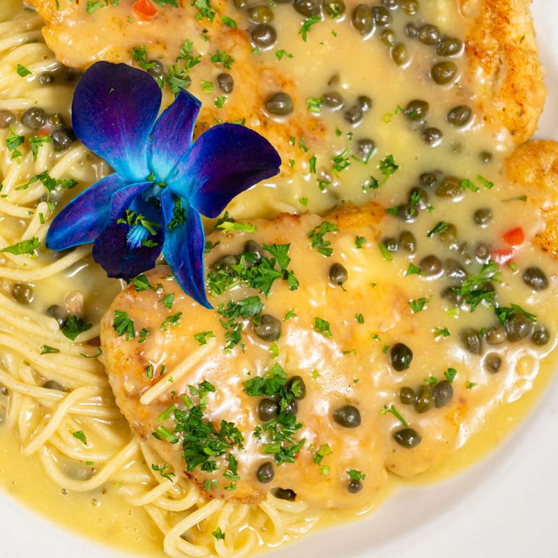 Lunch $13.00 | Dinner $17.00 • Breaded chicken breast served with lemon caper wine sauce over pasta
