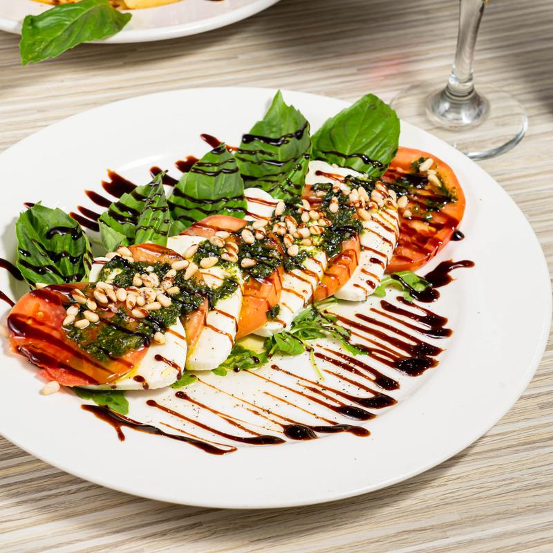 Sliced fresh mozzarella, tomatoes, and sweet basil, seasoned perfectly